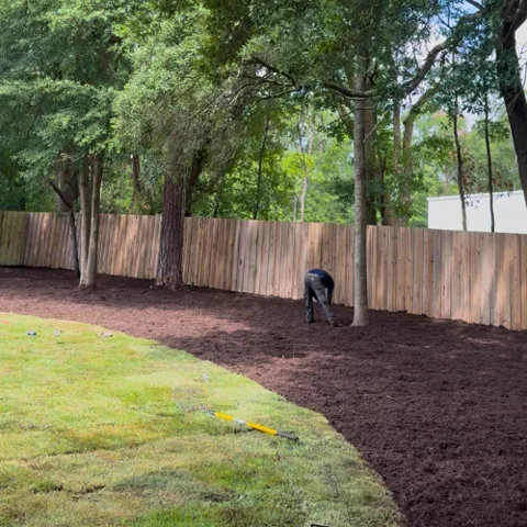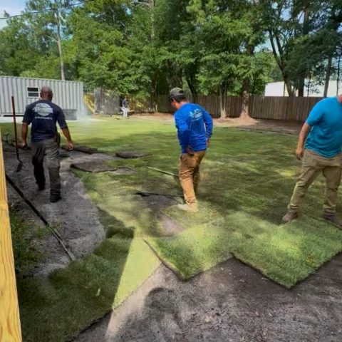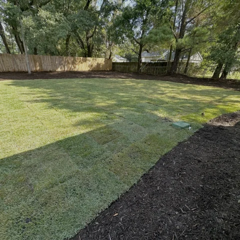 The upgrades didn’t stop with the patio. JC’s team installed new sod with an irrigation system and addressed the drainage issues by grading, and mulching under the trees to pitch water away from the house.