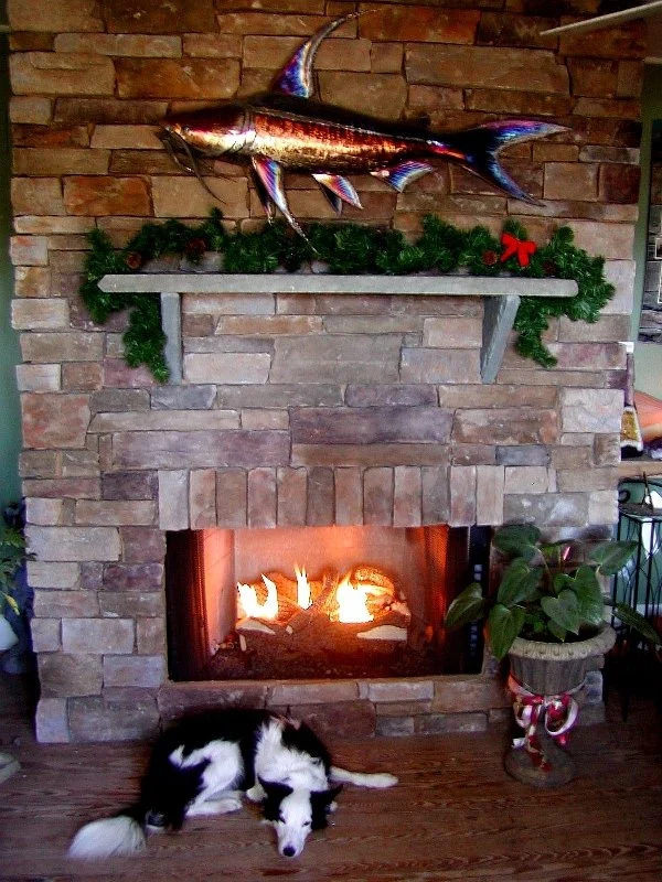 And finally, a “hearth-felt” holiday memory from Christmas 2010 at the former Stone Garden location. In the showroom of the wonderful old house once occupied in front of Nixon’s Oysters, Cammie, the beloved border collie mascot at the time, warmed herself by the fireplace built with Bucks County Country Ledgestone and a Bluestone mantel. It’s a reminder that hearths have always been at the heart of the season.